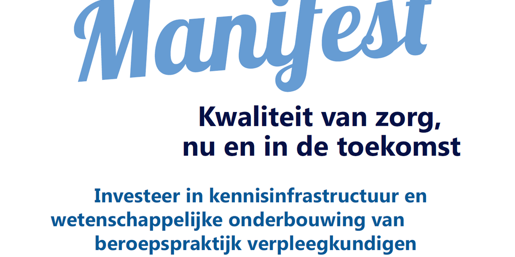 Verpleegkundigen, onderzoekers, beleidsmakers en bestuurders hebben het manifest Kwaliteit van zorg, nu en in de toekomst ondertekend. Hiermee roepen zij de bewindslieden van de ministeries VWS en OCW op om fors te investeren in de noodzakelijke kwaliteit van de verpleegkunde. Om zo het werk van de meer dan 300.000 verpleegkundigen, verpleegkundig specialisten en verzorgenden een betere wetenschappelijke basis en een adequate kennisinfrastructuur te geven.